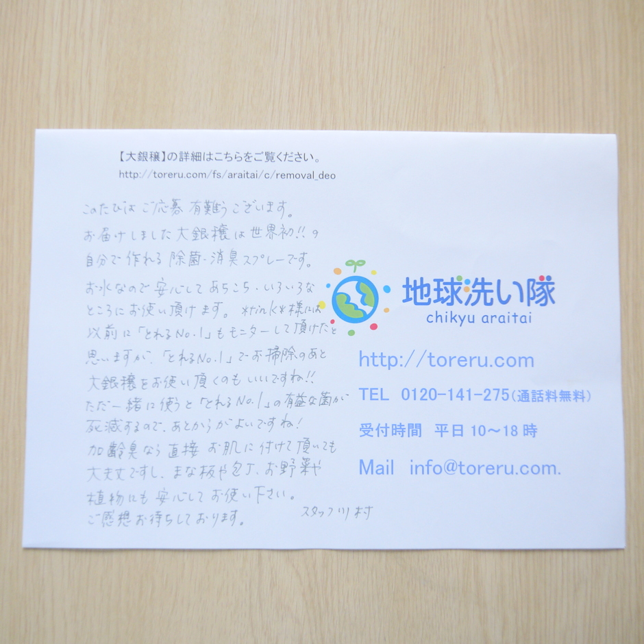 地球洗い隊スタッフ川村さまからあたたかいメッセージを
